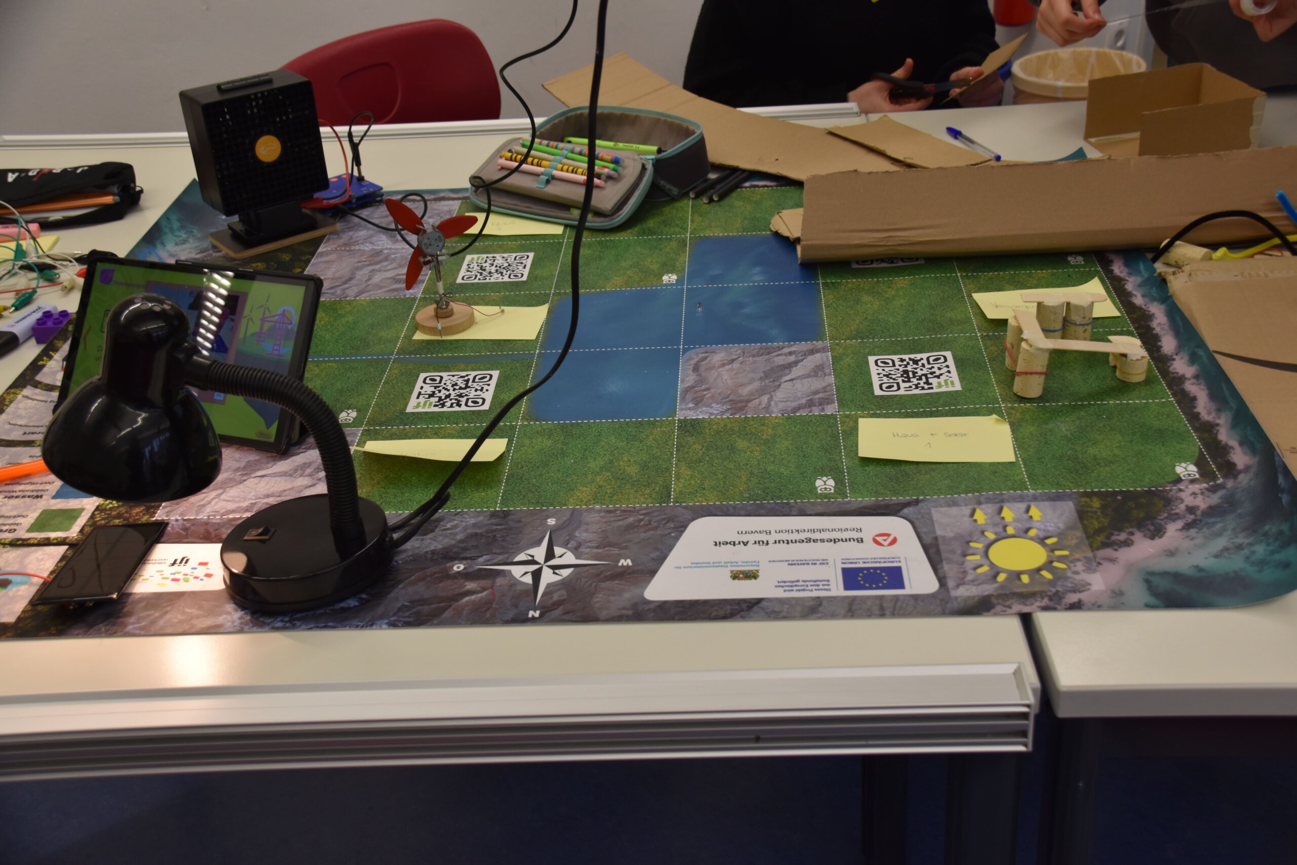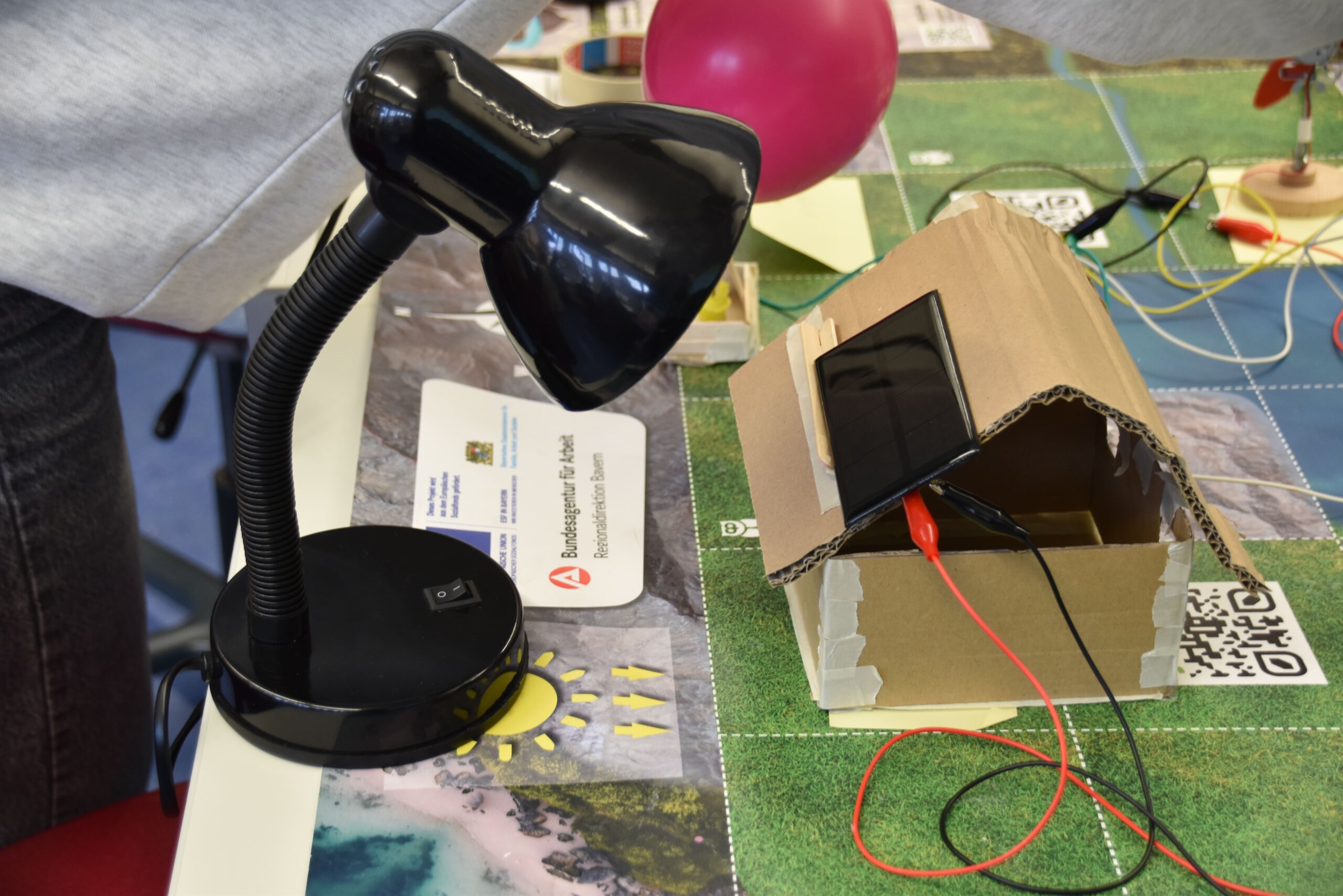 Ziel des fächerübergreifenden Workshops war, dass die Schülerinnen selbstständig in Gruppen ein nachhaltiges Dorf für Klimaflüchtlinge planten und bauten. Dabei durchliefen sie am ersten Tag zunächst ein Ausbildungscamp, in dem sie sich Wissen und Fähigkeiten für die Umsetzung des Projektes aneigneten. Neben den Referent*innen standen hierbei auch digitale Anwendungen wie beispielsweise VR-Brillen unterstützend zur Verfügung. Die Schülerinnen erprobten in physikalischen Experimenten, worauf zu achten ist, wenn man ein Dorf mit erneuerbaren Energien versorgen möchte. Aber auch Ansprüche und Bedürfnisse der zukünftigen Bewohner*innen sowie landschaftliche Gegebenheiten durften nicht außer Acht gelassen werden. So entstand dann am zweiten Projekttag gruppenweise jeweils ein Dorf, welches ihren Energiebedarf über erneuerbare Energien deckte. Um diese komplexen Aufgaben bewältigen zu können, erhielten die Schülerinnen auch Einblicke in agiles Projektmanagement. Die Vielfalt der angewendeten Methoden stärkte neben dem MINT-Wissen auch weitere Zukunftskompetenzen wie Kreativität, Empathie und Problemlösekompetenz.