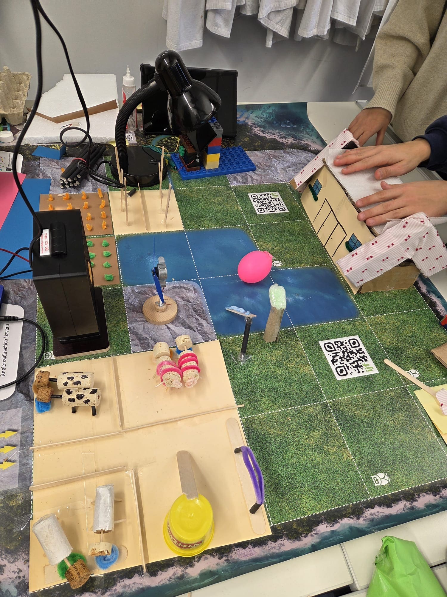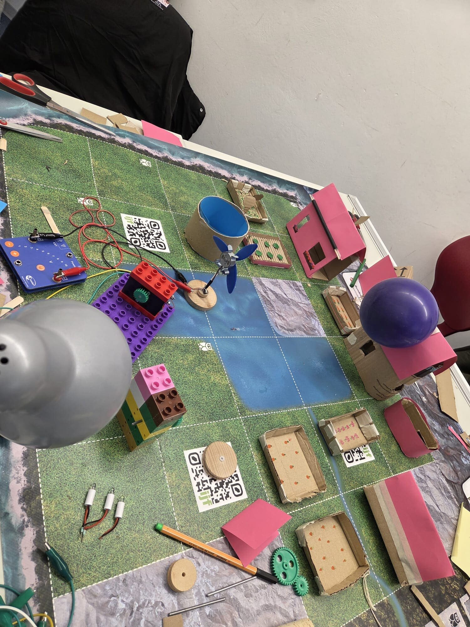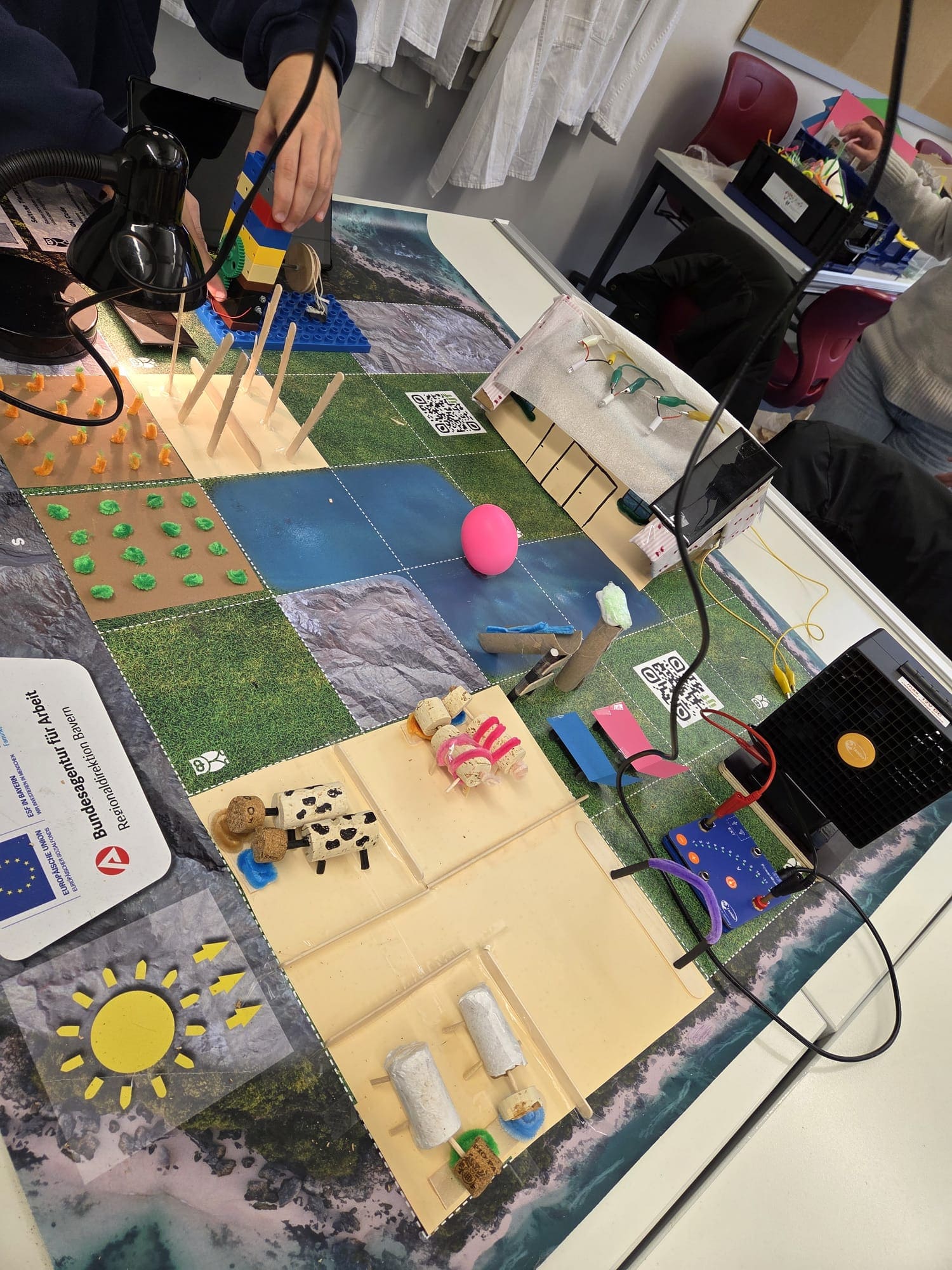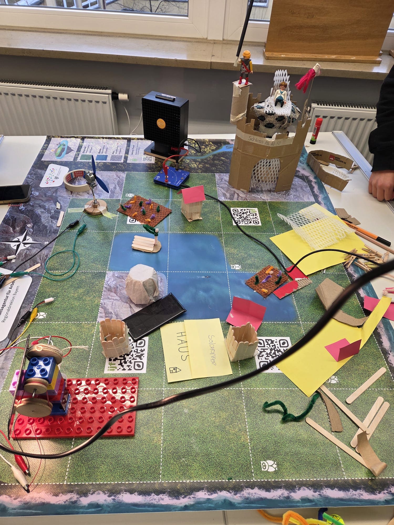 Bei den Vorstellungen der fertig umgesetzten Dorfstrukturen wurden die Gebäude und Bewohner*innen von den Schülerinnen auch in Geschichten eingebettet, so dass sich ein richtig lebendiges Dorfleben ergab. Somit wurde der Alltagsbezug der erneuerbaren Energien noch viel lebensnaher und realistischer für die Schülerinnen erlebt.
