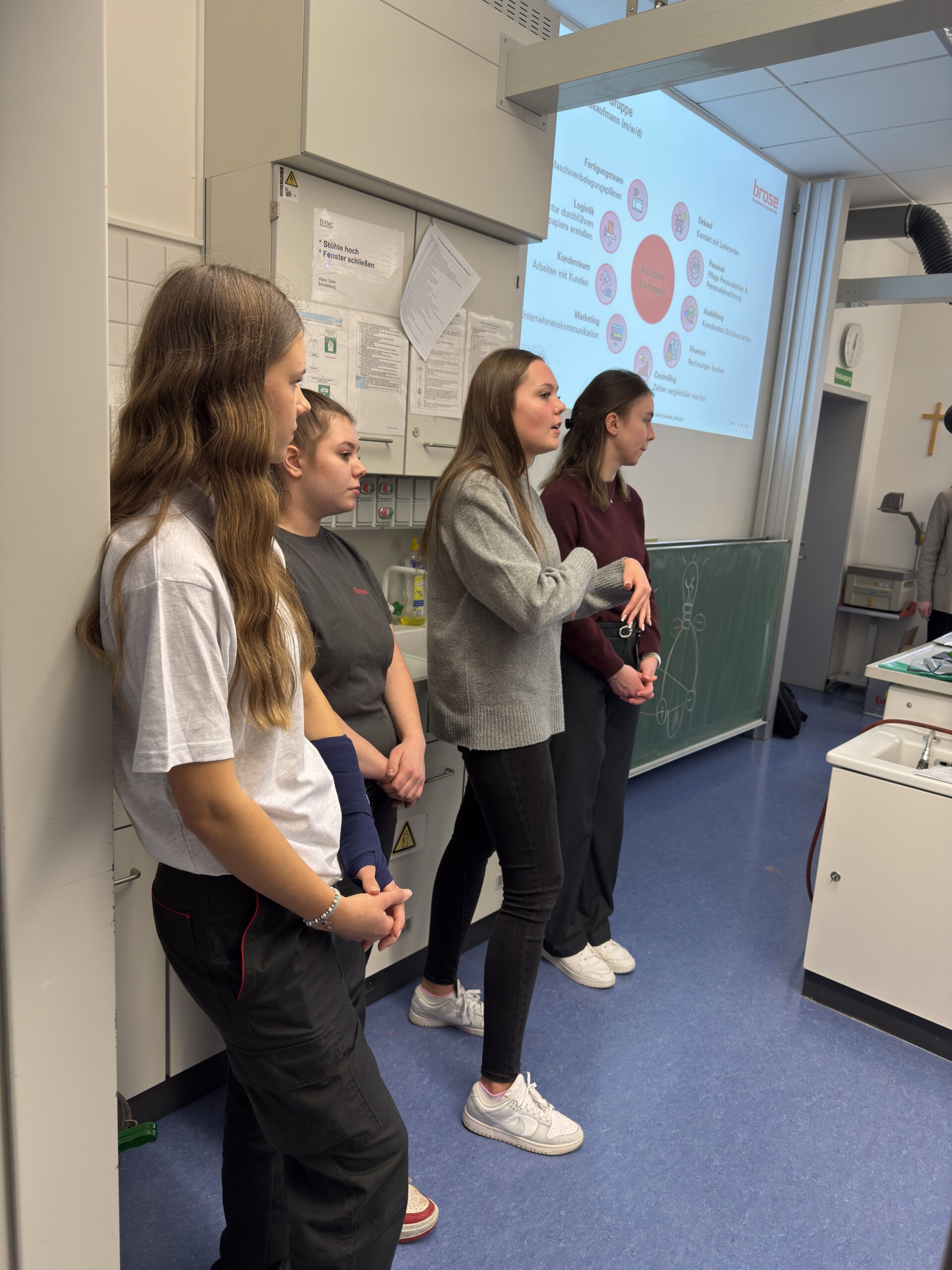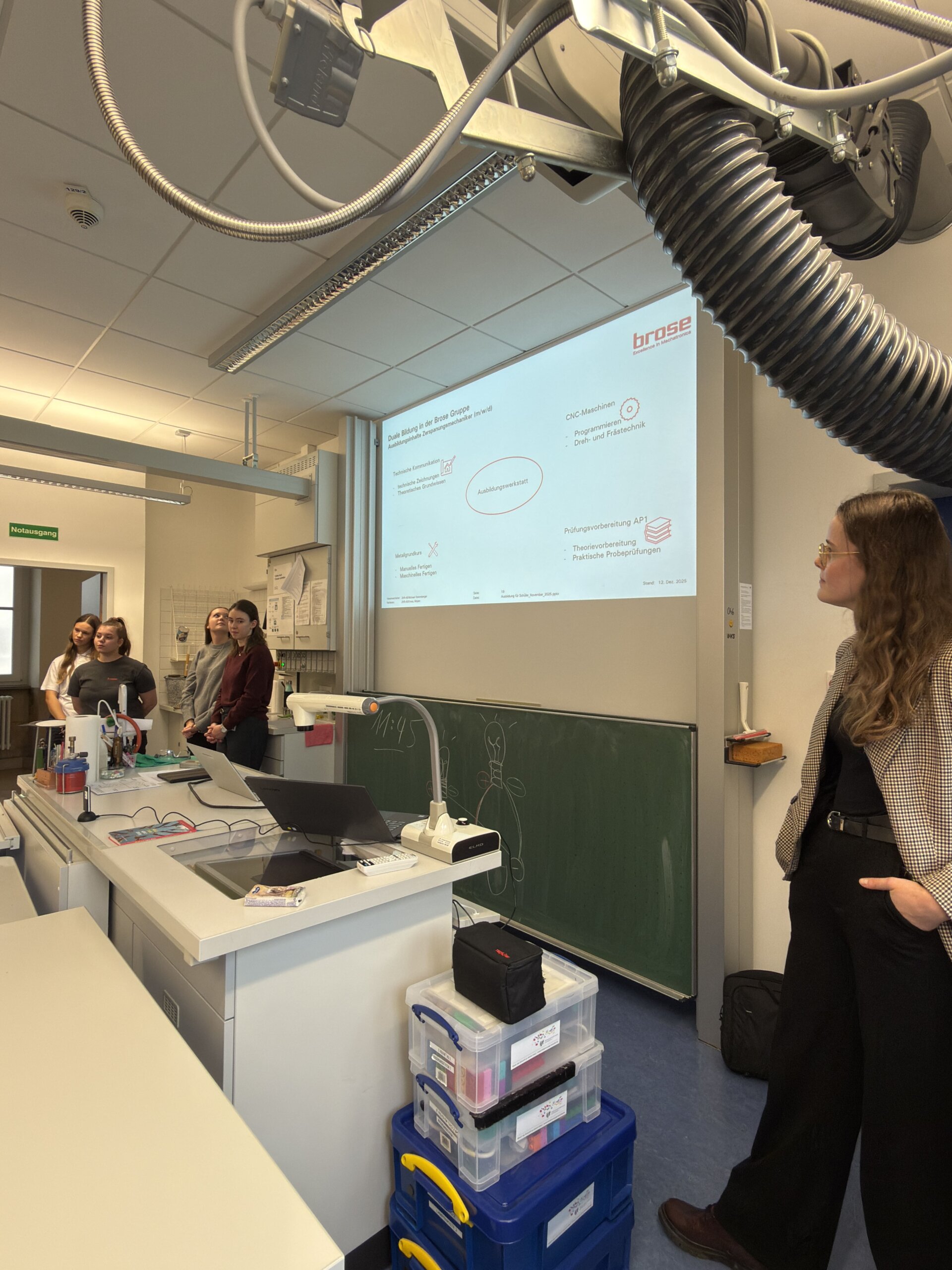 Neben dem Bau des Dorfes und dem Experimentieren war auch die Berufsorientierung ein wichtiger Teil des Projektes, weshalb neben dem Herausfinden von eigenen Stärken und Interessen auch die Firmen Brose und WVV ihre Ausbildungsberufe den Schülerinnen vorstellten. So waren jeweils neben der Ausbildungsleitung auch einige Azubis vor Ort, die die angebotenen Ausbildungsberufe der Firmen aufzeigten und den Schülerinnen für Fragen zur Verfügung standen.