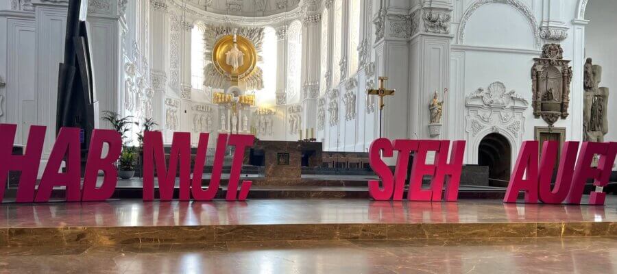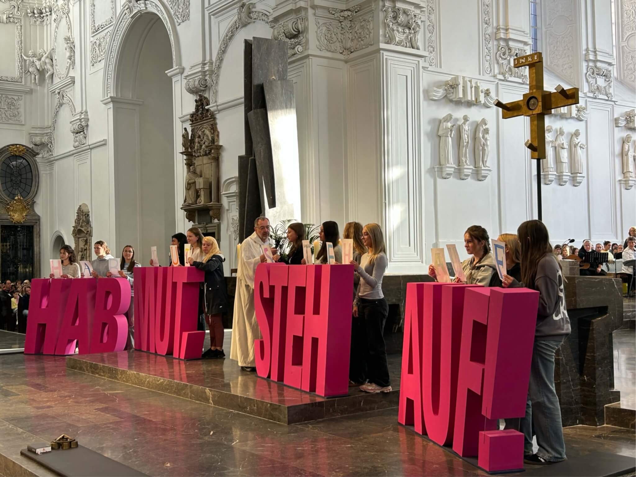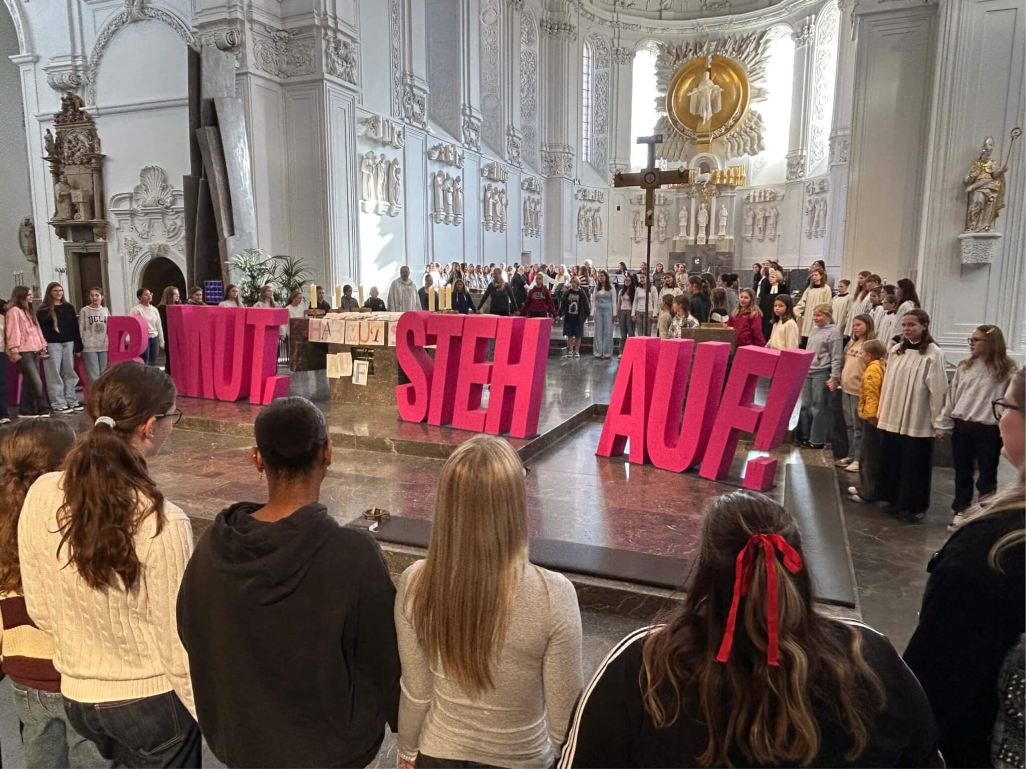 Unter dem Motto „Hab Mut, steh auf“, das auch das Leitwort des 104. Deutschen Katholikentags bildet, der vom 13. bis 17. Mai 2026 in Würzburg stattfindet, eröffnete die St.-Ursula-Schule im voll besetzten Dom das neue Schuljahr.