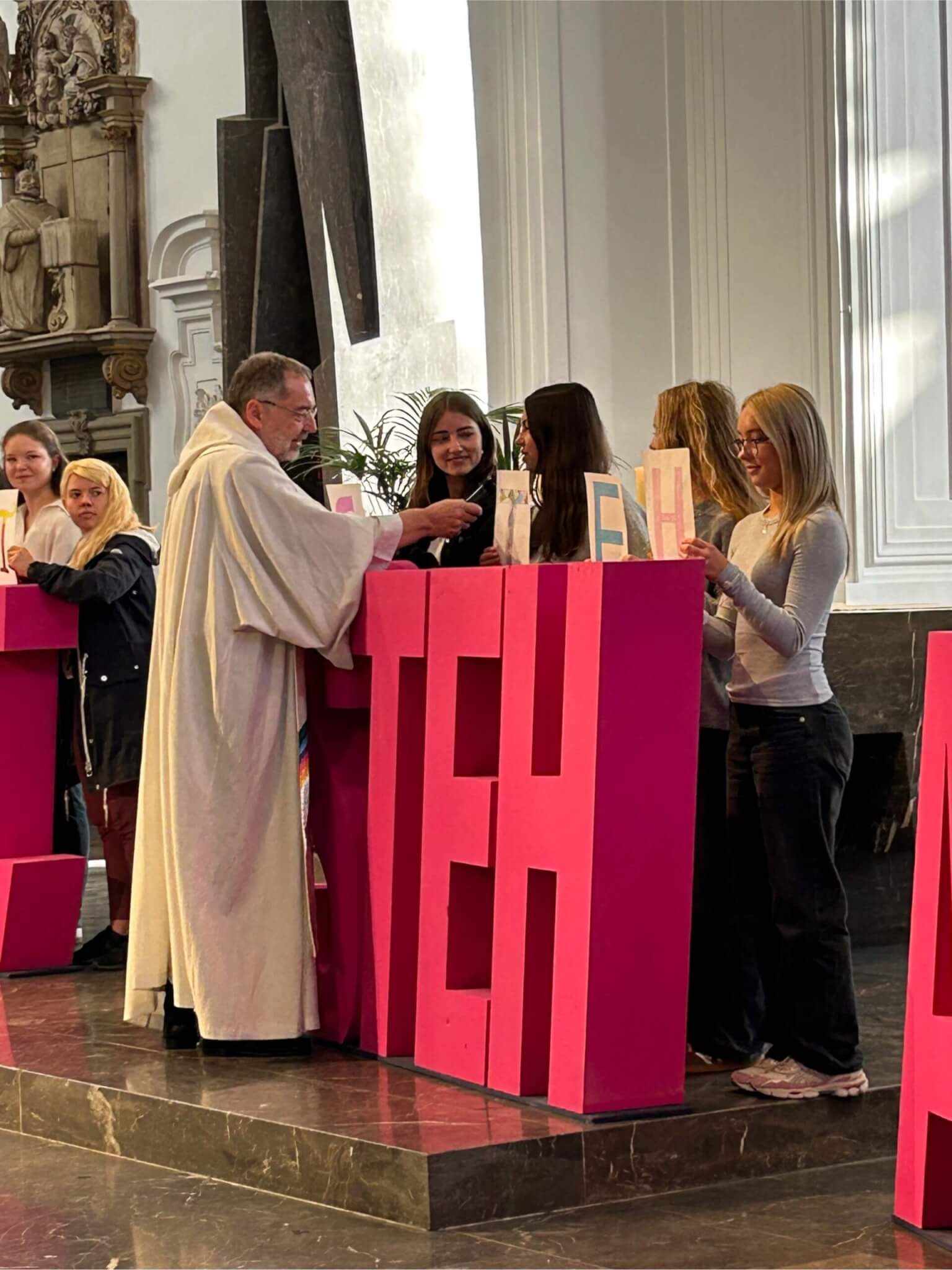 Im Anspiel des von Domvikar Dr. Matthias Leineweber und Pfarrerin Eve Eckert zelebrierten ökumenischen Gottesdienstes stellten die Schülerinnen ihre vielfältigen Talente vor.